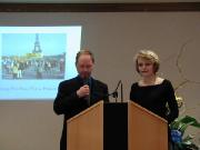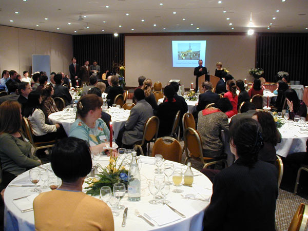 招待会上,来自欧洲、澳洲、亚洲、北美的四名学员分别代表所在各洲的法轮功学员向所有在压力下、在中国人权最差的困难时期,为在中国遭受迫害的法轮功学员呼吁并提供帮助的组织与个人表示了真诚的感谢。代表亚洲各国学员的台湾代表通过图片向与会者介绍了法轮功在台湾政府与公众的支持下蓬勃发展的情况。并同中国目前的残酷镇压做了对比。台湾学员代表张先生特别指出:台湾与中国大陆有着共同的文化背景,相同的文化渊源,因此来源于中国传统文化的法轮功在台湾受到了极大的欢迎。在过去的一年中,仅炼功点的数量就从300个猛增至600个。“饮水思源”,生活在自由、和平环境下的世界各国学员就更加关注中国大陆学员的处境与遭遇。