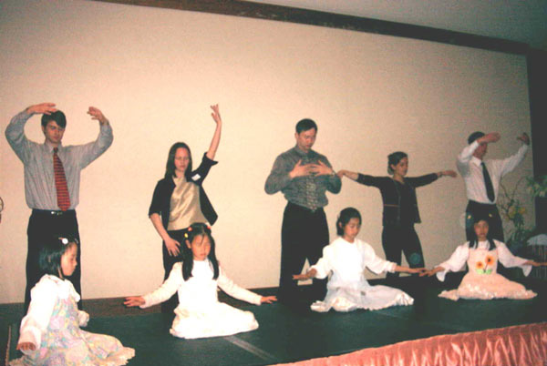晚餐后学员们为来宾演示了五套功法并表演了丰富多彩的节目,赢得了阵阵热情的掌声。招待会期间,有的使团代表当场就要学功;有的要书、要炼功带;有的国家使团代表,当时就邀请学员去当地弘法、教功。许多人权组织代表纷纷表示:将进一步提供更深入实际的帮助。