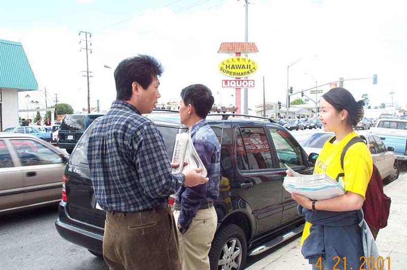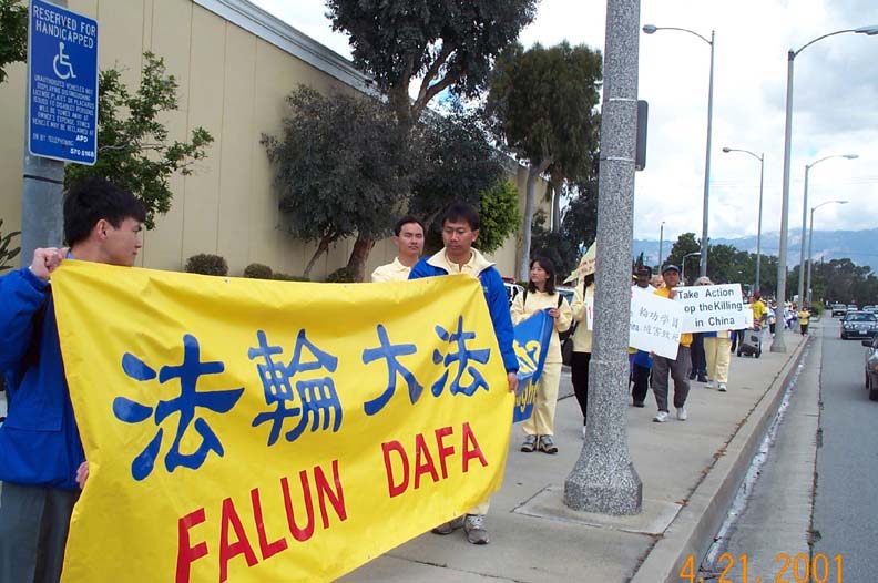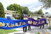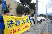 位于洛杉矶东面的圣盖博谷是南加州最大最著名的华人聚居地区。大法弟子经常在这一带集体练功,散发资料,向世人说明真相。4月21日,近70位大法弟子带着报纸、资料、标语横幅,在这里举行游行,纪念4.25两周年。