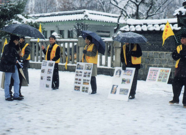 (韩国消息) 自去年年末自今年1月7日至4月,韩国学员先后在汉城,大邱,釜山,光州,全州等地组织了有一定规模的讲清真相活动。这些活动都是由原佛学会筹备会和三月末成立的佛学会组织的。