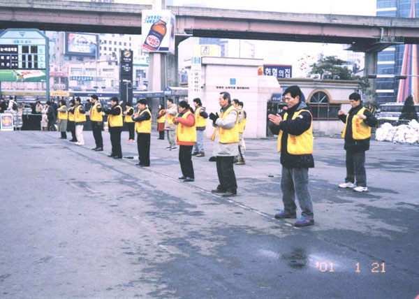 2001年1月21日 在汉城火车站前讲清真象2001年1月21日 在汉城火车站前炼功洪法