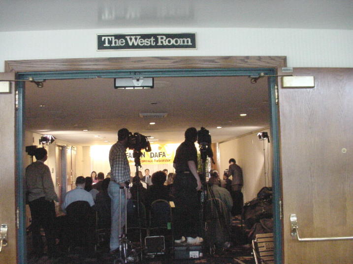 【明慧网2001年4月26日】 在日内瓦人权委员会对美国提出谴责中国人权状况的提议进行表决的前夕,为了呼吁国际社会的支持,停止江泽民政府对法轮功的残酷迫害,大华盛顿特区法轮功学员于四月十七日在国家新闻俱乐部成功地举办一场记者招待会。几十家媒体前来参加,其中包括CNN,美联社,法新社,路透社,美国之音,亚州自由之声,世界日报,其他的还有西班牙新闻社,奥克兰论谈,中国青年报,人民日报,光明日报,等等。两名法轮功学员在会上报导了他们因炼法轮功而在中国遭受的迫害。当天,CNN和路透社就对此作了详细的报导。
