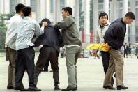 在北京中心辽阔的广场上,分散的抗议者们突然出现在数千中外游客中间。警察强迫来自美国、德国和法国的旅游者们把拍的照片和录像的底片曝光掉。