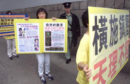 【明慧网2001年4月26日】 1.路透社4月26日星期四图片报导,