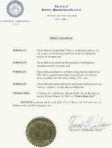 马萨诸塞州崇敬市宣布“法轮大法日”