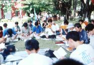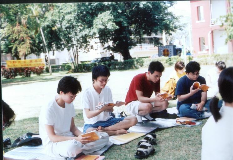 上午就在大家热烈地交流了校园内洪法与各自学校发展概况中不知不觉地过去了。下午就在看完了录像带「自焚疑案」与「出家人篇」后,大家紧接着上午的交流,并将主题移往心性修炼部分。由于大学生大多未接触事业或社会,所以大多谈及学业或一些个人名、利、情方面的过关;也有男女朋友之间谈如何摆正修炼与生活的关系;另外亦有几位学员也谈到了自己过去的得法经过与大法修炼的切身经验;当然也有些学员谈了如何将自己的思维由感性升华为理性的体悟以及如何摆正学法与炼功的关系等问题。就在学员间祥和与热烈地气氛中讨论交流最后亦是意犹未尽地结束了。
