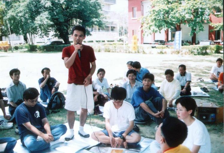 首先我们先是读了师父的精進要旨与新经文,再来即是各校大法成员的交流时间。每个大学都介绍了各自的社团近况与大法在学校的推广情况,并举很多具体事例说明如何洪法与讲清真相。例如中正大学于4月中即举办了「法轮大法周」:在活动期间,他们运用了一些不错的效果,如挂两条两三层楼高的两句洪吟诗句、图片展、书展、影片欣赏、放洪法录像带在人多的餐厅、功法展示、两场说明会等等方式使校内师生都能接触到大法,把整个校园的场都带动起来。而各自大学也都谈了如何运用当地环境与特殊性洪法,如直接成立社团、办说明会、申请在校内办九天班或利用教育学程的特殊性洪法、放大法书籍于图书馆或学校书局、发传单至学生各间宿舍、在学校建立炼功点、放简介于图书馆或架有免费取阅之处等方式。虽然在这些过程中,难免会遇到挫折与困难,但每件事都存在着我们需要自己向内找的部分。有经验的学员于交流会中大致都谈到了于整个学校洪法中最重要的是全力以赴但是「人心」不能太重。