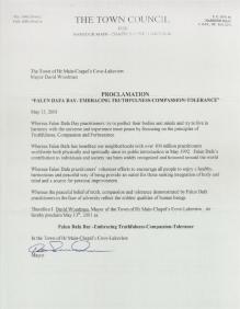 加拿大纽芬兰省洛继海湾中湾外湾镇宣布“法轮大法真善忍日”