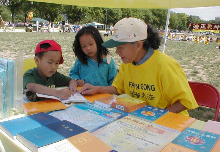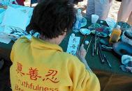 学员们在大草坪上支起了5个帐篷,提供不同的服务。有的画家学员现场挥毫作画,与游客结缘洪法;有的医生学员,进行医药健康咨询,从祛病健身方面向游客洪法。数名中外女学员穿上中国的传统古典服装,散发真相资料,吸引了不少游客。学员们真实的修炼者形像与生动、丰富社会形像同时展现,使江泽民一夥对我们的诬蔑和歪曲不攻自破。