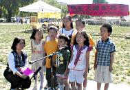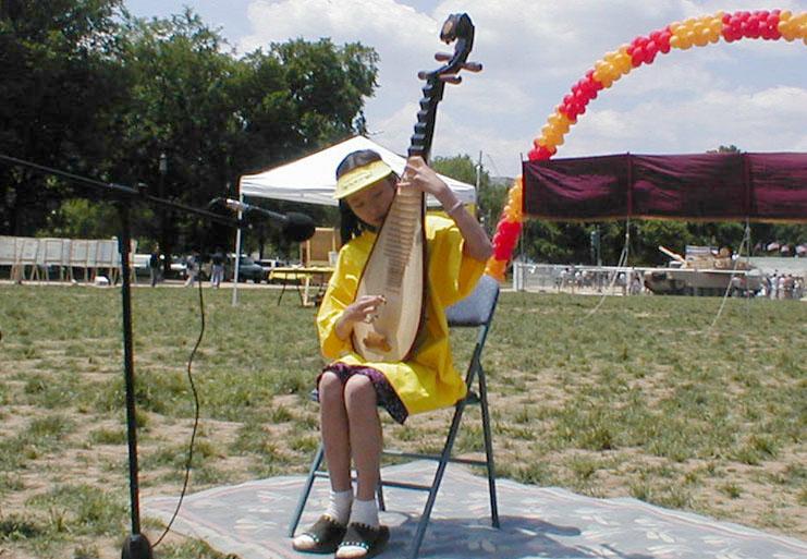 数百个气球装扮成了一个巨大的拱形门。大家拉起数个横幅,上书:“法正乾坤”、“法轮大法”、“真、善、忍”等等。几名学员不断地将印有法轮大法“真、善、忍”的气球发给来往的游人,他们都欣然接受。小弟子们表演了舞狮和杂技,还有的小学员进行了琵琶弹奏和小提琴独奏表演,更是赢得观众的阵阵掌声。一对新婚的学员穿上中国古代传统的新娘、新郎服装,其中新郎还是一名西方学员,给了大家一个意外的惊喜。