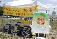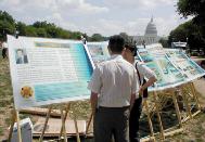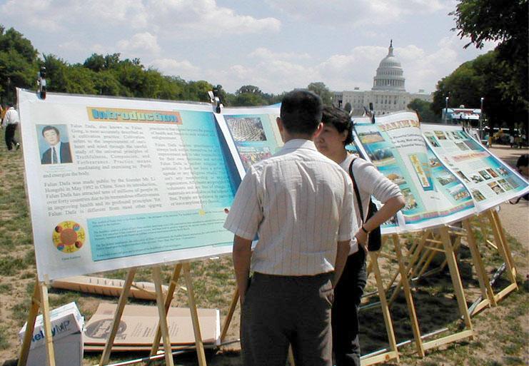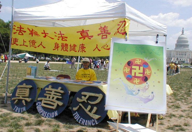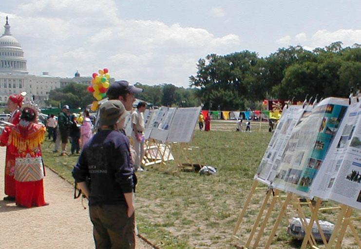 【明慧网2001年5月14日】2001年5月13日,美国大华府地区上百名法轮功学员,在国会山庄前面的大草坪,举行盛大庆典,热烈祝贺第二届“世界法轮大法日”。活动从上午10点至下午4点,吸引了不少游客观看。