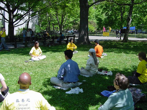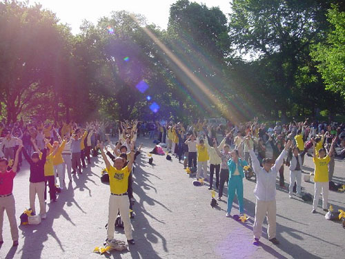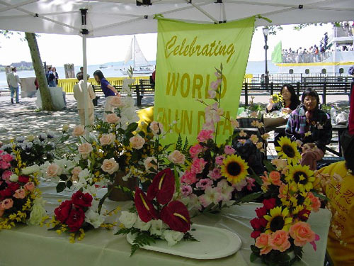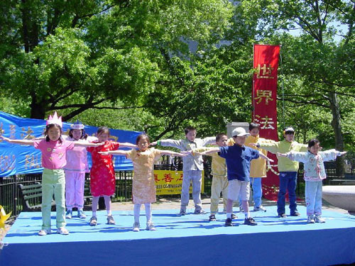 五月十三日,几百名来自纽约地区的大法学员和他们的家属,一早就来到了纽约市的炮台公园,庆祝五月十三日,这一人类伟大而又殊胜的节日,世界法轮大法日。九年前的今天,我们伟大而又慈悲的师父将宇宙大法第一次弘传到人间,从此,善心被唤醒,道德在升华。九年后的今天,法轮大法犹如阳光雨露,已深深地滋润着五大州亿万人民的心灵。