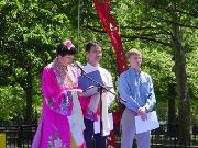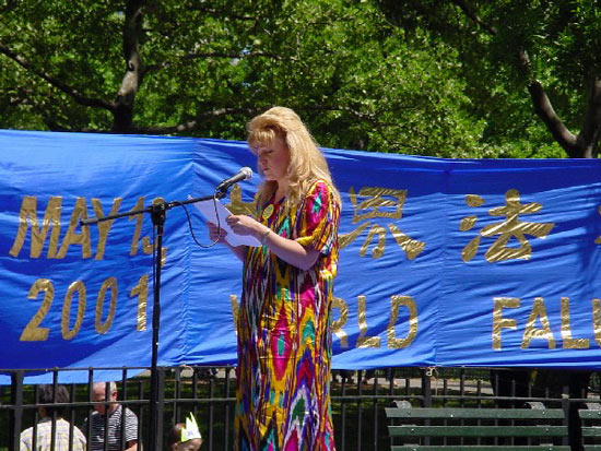 中午时,法轮功代表用中、英、西班牙和俄等四种语言宣读了热情洋溢的贺词,代表大纽约地区的全体学员向我们慈悲伟大的师父问好。纽约州参众议员发来贺信和嘉奖令,两位纽约州的国会议员还授予法轮大法和纽约法轮大法弟子“国会特别奖励证书”,新泽西州参议院议长兼代理州长宣布2001年5月13日为“新泽西州法轮大法日”。