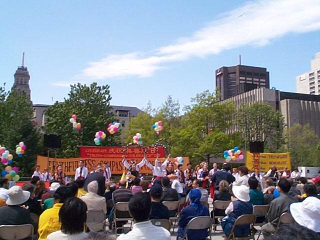 “真、善、忍”日的庆典是多伦多大法弟子为世间一切善良人所奉献的一片赤诚,是对人类先天本性的呼唤,环宇之间普天同庆,真、善、忍中的一切觉悟了的生命期待着人类觉醒的一天。