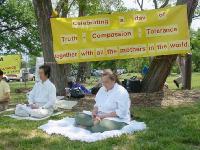 “风筝节”五月十二日(周六)举行,游人逾万。一大早,圣路易学员和哥伦比亚部份学员三三俩俩先后聚集在森林公园(Forest Park),搭帐篷,挂横幅,发资料,讲真相,伴随着风筝节的开始,我们的弘法也有声有色的展开。