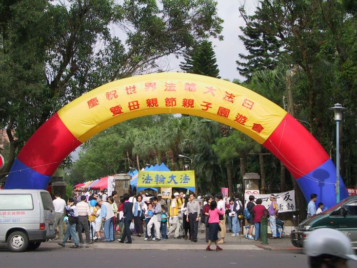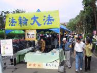 『特别是当人类社会的道德处于全面崩溃时,是伟大的宇宙再一次慈悲于人,给了人这最后的机会。』《精進要旨「再论迷信」》所以,在这特殊历史时期的正法进程中,为了让更多世人明白大法弟子受迫害的真象,为了能使大法在人间更快更广的洪传,台北大法弟子便于五月十三日这样一个的喜庆佳节,在台湾大学校园内举办了一次别开生面的「园游会」,希望能以这样的常人形式吸引更多民众前来参加。