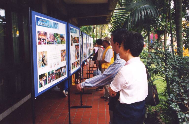 设在回廊的图片展览区,把大法的传出及在世界各地的洪传,完整的以视觉方式呈现出来。许多人静静的在图片面前驻足良久,一幅一幅的看下去,相信他们因而对大法有了更正确的认识。