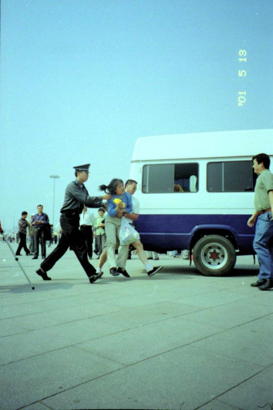 图片报导:2001年4月25日天安门广场警察抓捕大法弟子