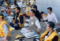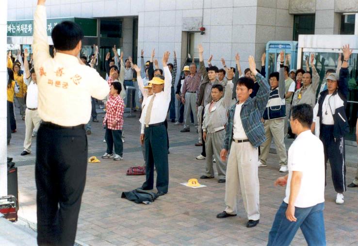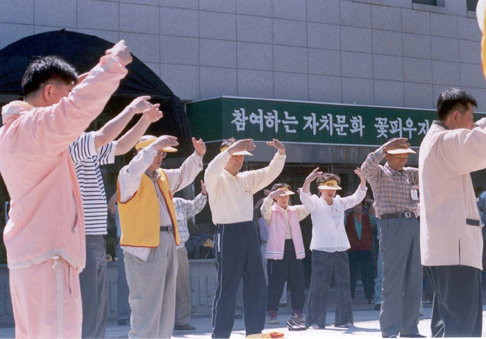 不久,“大德文化殿堂”的广场被300余名集体炼功的学员和150余名见报纸广告慕名而来得法学功的人们挤得满满当当。学员们见大邱市来如此多人得法而个个深受鼓舞,而刚来得法的人们见这么多学员集体炼功对法轮功更加吸引,在长达几小时的学功中竟无一人中途退场;一边是集体炼功,一边是集体学功,大德文化殿堂呈现一片祥和而热烈的气氛。