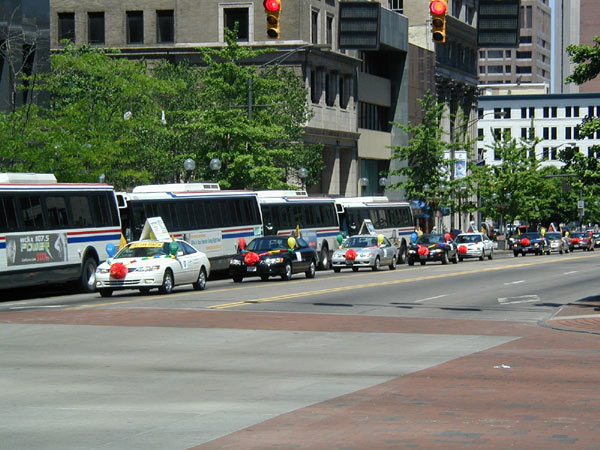 下午4点,我们进行了游行,浩浩荡荡的游行队伍走在宽阔的大道上。大法轮图案的横幅,“法轮大法好”“真善忍”“佛光普照,礼义圆明”的横幅迎风飘动。许多过往的人们欣然接过我们学员递上的讲清真象的报纸,真象资料。游行经过了多伦多最繁华的购物中心,许多的路人十分关注我们的游行场面。