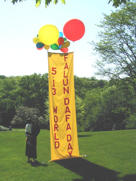 法轮功代表在庆祝会上宣读了加拿大法轮佛学会祝贺“真善忍”日的贺词,贺词中这样写道:“九年前的五月十三日,我们的师父李洪志先生把法轮大法传给了世人。他教导我们“真善忍”不仅是人类美好的品德,她更是这浩瀚宇宙最根本的特性和法则。不同层次有不同的“真善忍”的体现。通过同化“真善忍”,社会和民众可以获得真正的美好。