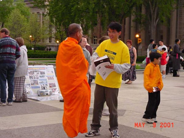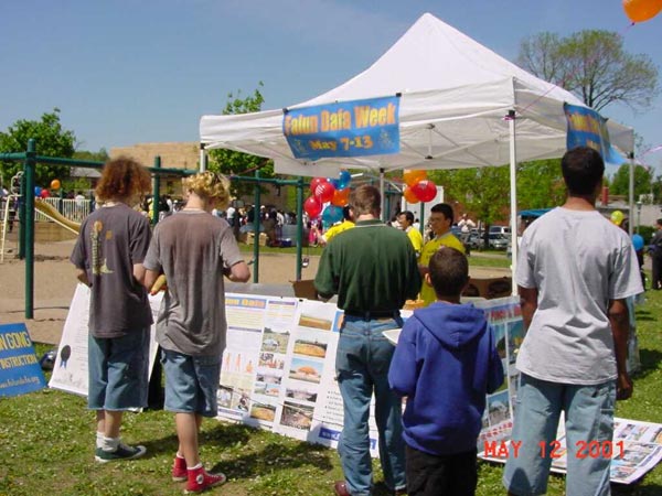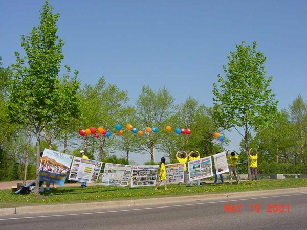 【明慧网2001年5月19日】明州法轮功弟子在圣保罗市和明尼那波利斯市法轮大法周(5/7-5/13)期间及世界法轮大法日,参加和举办了各项洪法活动。期中包括圣保罗市和明尼那波利斯市市中心及公园的洪法活动。达赖喇嘛在明州举办讲座期间的
