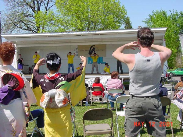 活动。五月十二日亚洲节游行,功法表演及展位上的洪法和讲清真相活动。为庆祝世界法轮大法日这一伟大而神圣的日子,挂有“World Falun Dafa Day(世界法轮大法日)”特大横幅的飞机于五月十二日在圣保罗市和明尼那波利斯市市中心上空盘旋了两个小时。