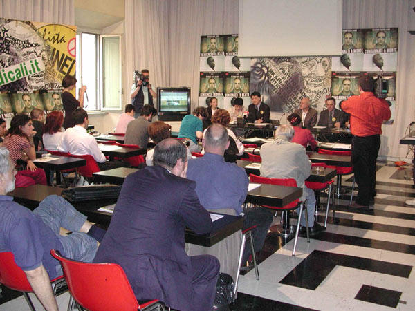 五月十八日,在跨国激进党主持下,法轮功学员在意大利首都罗马举行了一次记者招待会,揭露江泽民当局肆意践踏宪法及人权迫害大陆法轮功近万学员的事实。意大利几家主要电视台和报社都出席了这次活动。会上首先播放了法轮功人权记录片,尔后,法轮功发言人张而平及一位意大利学员介绍并回答了有关法轮功及其在中国的悲惨遭遇等一系列问题。欧盟议员马克巴内拉先生以及跨国激进党秘书长也出席了这次记者招待会并发言支持法轮功的人权及信仰自由。欧盟议员巴内拉先生表示感谢法轮功学员对信仰自由表现出的勇气。他盛情邀请李洪志老师到意大利访问并将敦促新当选的意大利领导人及其总统接待李老师。这是法轮功学员首次在意大利首都罗马举行记者招待会,也成功的使许多民众对法轮功有了客观公正的了解。意大利电视台和报纸对这次活动都进行了客观正面的报道。