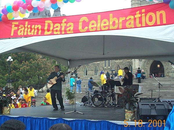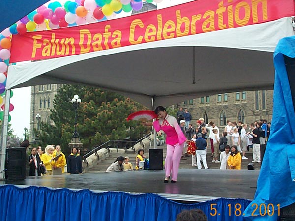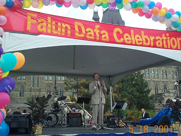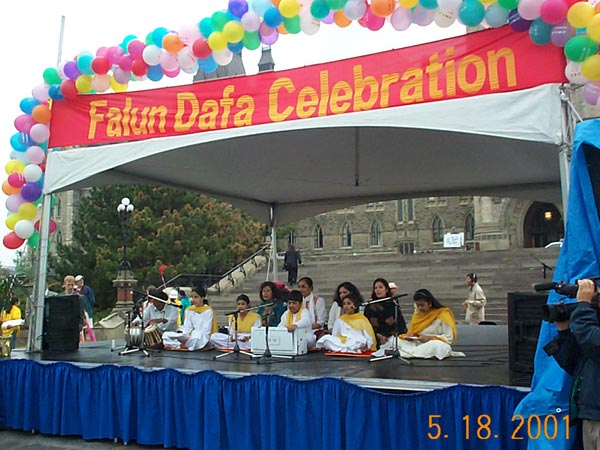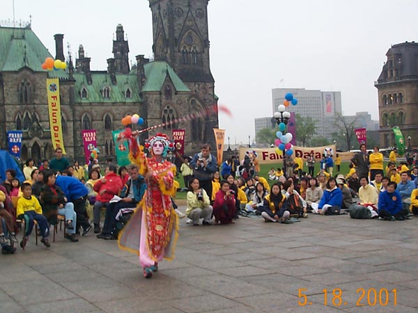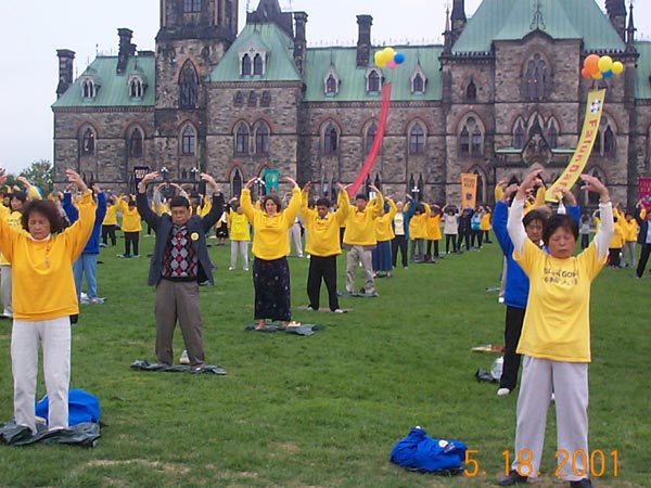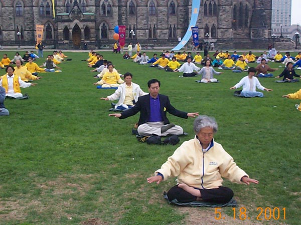 2001年5月20日,来自世界各地的上千名大法学员在渥太华市中心美丽的Confederation公园以炼功的方式,开始了大规模的洪法活动。炼功之后,学员们以庄严殊胜的手印清除自身的不正念头与思想业力以及三界内的邪恶势力。