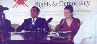 在发布会上,法轮大法弟子分别用法语和英语介绍了目前已知的有关朱颖被抓的情况,并回答了记者有关朱颖被抓和法轮功在大陆遭受残酷迫害的情况。朱颖是加拿大永久居民,Concordia大学学生,已留居蒙特利尔三年多。她是在香港大法活动结束后回广州探望年迈的父母,于五月十日离开香港经深圳海关入关时失踪的。据香港人权组织近日证实,朱颖已在深圳入关时被抓,现被非法关押在广州。