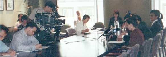 新闻发布会结束后,现场播放了天安门“自焚”录像疑点分析录像带,揭露了江泽民集团制造谎言欺骗人民、草菅人命、嫁祸于人的邪恶本质。记者们对于一国当权者竟作出这样伤天害理之事,不停地摇头,觉得他们实在太过分了。