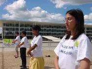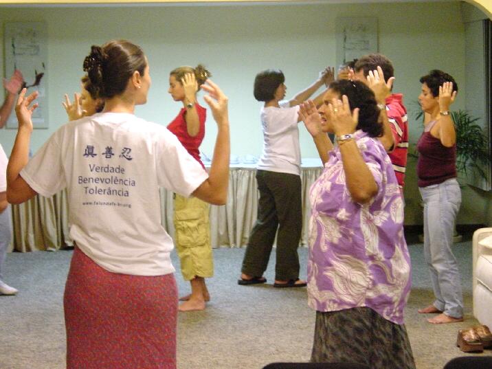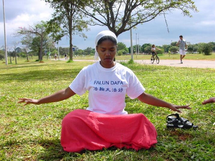 【明慧网2001年5月6日】圣保罗是巴西一个熙熙攘攘的大城市。里约热内卢的人们以美丽的海滩为生活中心,而圣保罗则不同,它是巴西所有商业活动的中心。如果不堵车的话(这种情况比较少见),从这里开车到海边需要一个半小时。因此圣保罗人选择在美丽的公园中锻练身体,以消除繁忙的城市节奏带来的压力。法轮大法的修炼者正是在其中一个美丽的公园中与本地修炼者一起炼功并向所有感兴趣的人们传授这一功法的。