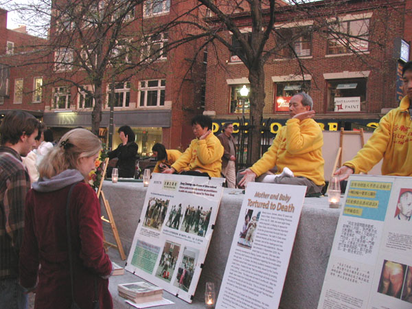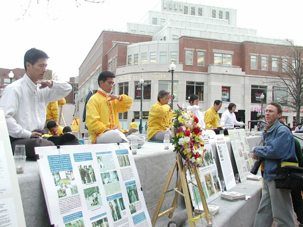 图片:麻省剑桥大法弟子在哈佛广场举行纪念4.25洪法活动