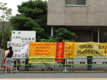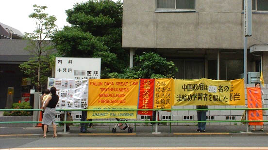 【明慧网2001年6月1日】自从春节期间江泽民政治流氓集团炮制天安门自焚事件以来,日本大法弟子每周除星期六、日休息日以外,天天在东京的中国大使馆前揭露邪恶、