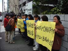 日本大法弟子春节以来天天在中国大使馆前揭露邪恶