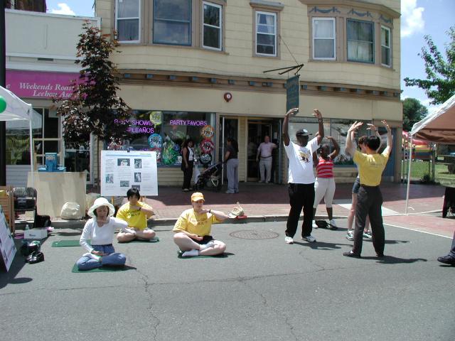 一天的洪法从始至终,不断的有路人停足寻问是否可以现场学功,是否有学功点在所住附近。一位二十岁左右的白人姑娘一口气学了四套动功。她那深深入静的神态嫣然如炼功多时的学员。之后她向母亲说:“妈,这功法太好了,我感觉非常放松,似乎周围的世界都不存在了。我们去找炼功点,我一定要你和我一起炼。”