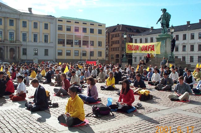 法会后,全体学员在市中心广场进行了集体炼功和再一次发正念除恶。