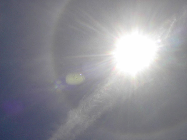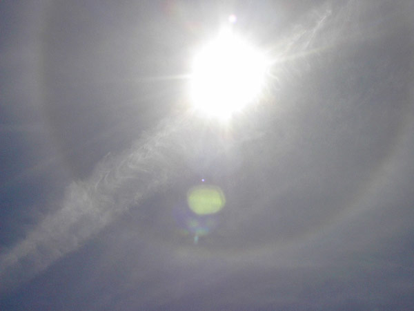 【明慧网2001年6月19日】6月17日美国西部时间中午,旧金山湾区方圆几十英里都可见到太阳周围的彩环,彩环内外还有不同大小不同颜色的小光环,似乎还在围着彩环中心旋转。彩环持续近一个小时才消失。