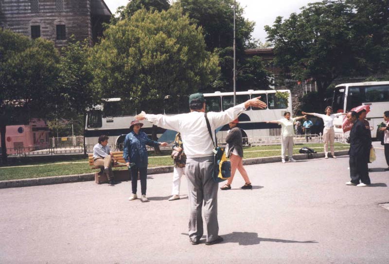 我们在著名的清真寺及圣苏菲亚教堂前播放炼功音乐,同时炼功。许多人停下来观看。他们都觉得这套功法看起来十分祥和、优雅。