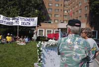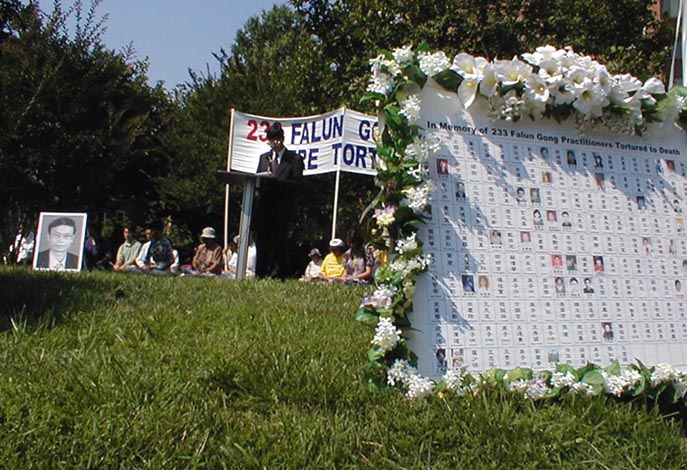 ,强迫孕妇堕胎,强奸,放蛇和蝎子咬。到目前为止已有234名法轮功弟子被折磨、暴打致死。一位具有美国公民身分的李江帆博士在新闻发布会上作证,披露他兄长李白帆讲师被公安谋杀于「洗脑班」的案例。另一位学员揭露了大陆的女法轮功学员遭恶警强奸的暴行。法轮功学员希望通过媒体呼吁停止发生在中国的对法轮功学员进行虐杀、停止使用酷刑。几家中文和英文媒体进行了现场采访。(2001年6月26日报道)