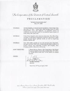 【明慧网2001年6月3日】加拿大不列颠哥伦比亚省萨尼科市宣布2001年5月13日为“世界法轮大法日”。