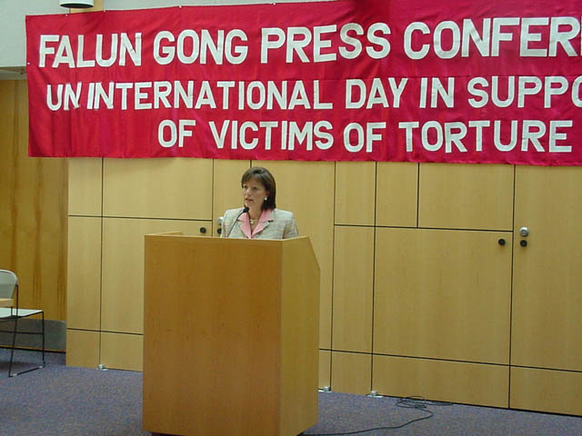 堪萨斯州的国会代表丹尼斯.莫尔专门为新闻发布会写了致辞,并为由于正在华府工作而不能亲临会议而表示遗憾.他委托他的当地办公室工作人员代为宣读该致辞。以表示对于法轮功学员在中国所遭受的酷刑及虐待的深切同情,他强烈呼吁中国政府停止镇压法轮功。在致辞的结束,他写到:我要把法轮功的精神“真,善,忍”带到我的工作中。堪萨斯州议员凯伦.蒂维塔做了长达10多分钟的讲演。她强烈呼吁中国政府停止镇压法轮功,停止酷刑法轮功学员。两州的部分遭受酷刑及囚禁的幸还者们讲述了她们在中国的遭遇。法轮功学员遭受酷刑迫害的真相录相片把会议推向了高潮。会后,凯伦与学员们又进行了长时间的讨论。她表示要尽她的最大努力帮助法轮功学员。望着她那真诚的目光,紧紧地握着她的手。我们从心里为她高兴,她为自己及她的人民做了一件最伟大的事。堪萨斯州议员大卫.哈夫也到会表示支持。