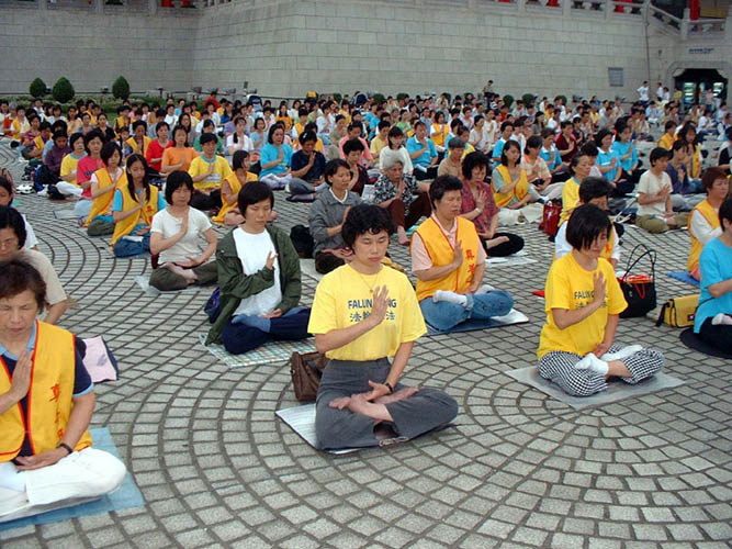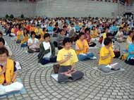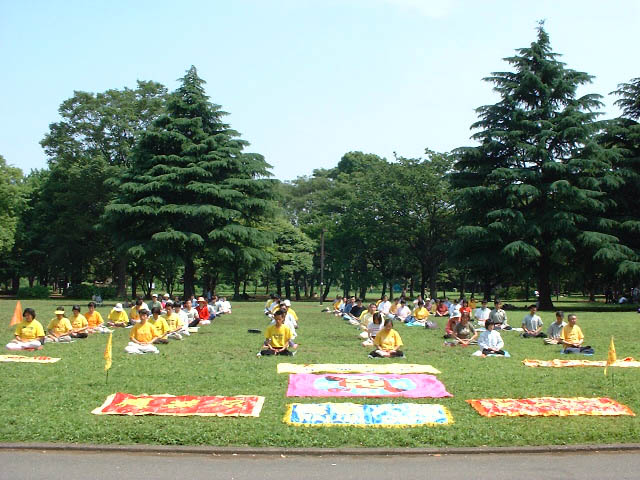 2001年6月3日星期日,来自关东地区的120多名日本大法弟子汇集于东京代代木公园,集体炼功,学法,并于晚上北京时间17,18,19整点,三次和全世界的大法弟子一起,共同再发正念,根除三界内破坏大法的一切邪恶,无所不包,无所遗漏。并集中正念默念师父授予我们的正法口诀:“ 法正乾坤,邪恶全灭”。大家都感受到强大正念之场的威力,同时也看到注定被彻底销毁的邪恶的最后的挣扎。
