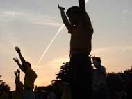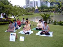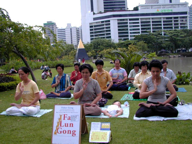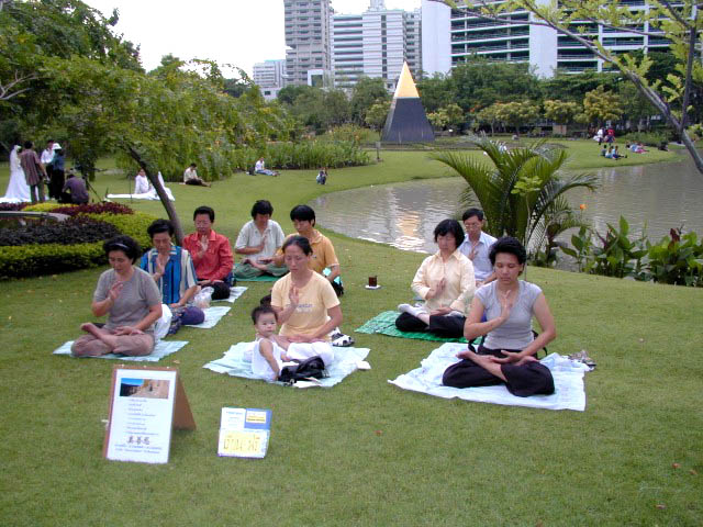 六月三日下午三点四十左右,泰国大法弟子来到皇后公园炼功点,在打坐清除自身不好的因素之后,四点正开始〈北京时间17点〉与全球大法弟子一起集体发正念。当我们单手立掌,发出“法正乾坤,邪恶全灭”的真念时,四周一片肃穆庄严。在五点、六点的再次发正念之后,大家看到一直笼罩着我们上空的阴云已经消散,天空复又晴朗,夕阳生辉,天清体透。