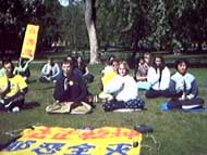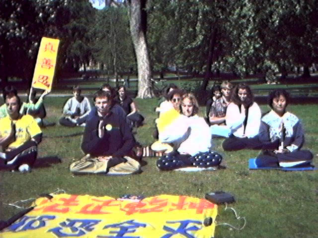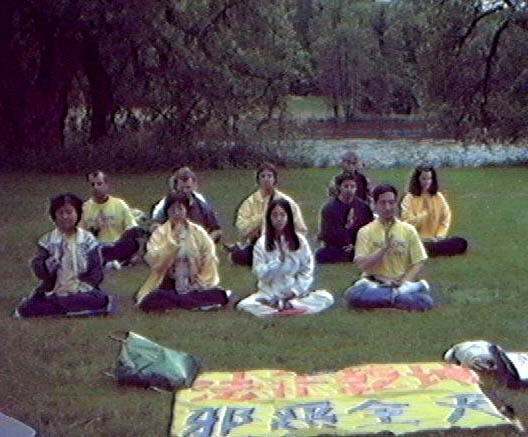 早上在集体炼功时,有一个不明身份的中国人找到公园管理处,唆使公园管理人员阻挠我们在公园集体炼功,学法。但是,学员坚定的正念与善意的解释,说明真相,使我们的正法活动得以顺利进行。在我们第二次集体发正念的时候,邪恶更加疯狂的垂死挣扎,在这个空间的表现是发正念时,来了两个不明身份的下身赤裸的50多岁的男子,也模仿著盘腿立掌,坐在队伍的前面。在场的几位老学员马上发正念铲除邪恶,当下把他们驱除出场。就像师父在2001年加拿大法轮大法交流会上讲法所说的,“这个邪恶它看到了自己要被清除的时候也是极其嚣张的”,那些操纵人的邪恶生命连续冲击了三次,但最终在大法弟子强大的正念面前被清除。