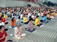 在三个时间段发正念期间,弟子们没有休息,一直交叉在炼动功和静功。大家感到这样非常好。