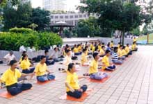 世界法轮大法日--马来西亚吉隆坡双峰塔下洪法炼功