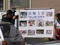 | 学员接受记者采访谈自己在大陆监牢里的亲身经历 | 摄影记者对大法的图片很感兴趣 |