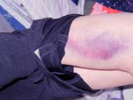 另一个干警大约40岁左右身高165上下有点胖,在傍晚七点多,来拷问我们。他恶魔附体失了控一样,轮流疯狂毒打我们三名大法弟子。他打人只用脚去踢去踹。踢头、踹脸、踢腿、踢铐坐在铁椅子最边上的女大法弟子的腰背部(踢坐在中间的腰背部不方便)。大法弟子们向他善意的讲他也不听,越发疯狂。他见踢踹不能使大法弟子讲出地址,就从办公室里取出一个黑色瓶子,里面不知装的什么药水,轮流扳扬起大法弟子的脸往嘴里灌药水,灌不进去,就往鼻子里倒,往头上浇。嘴里还不停叫:我叫你长功,我叫你长功。药水散发着浓烈刺激的味道,浇在脸上烧得嘴唇鼻子周围火辣辣的痛、口干舌燥……,当时的痛苦真是不能言表。