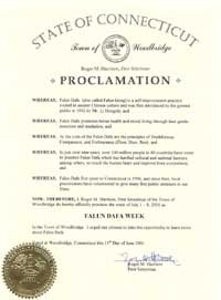 【明慧网2001年7月1日】康涅狄格州木桥镇宣布2001年7月1日至8日为“法轮大法周”。